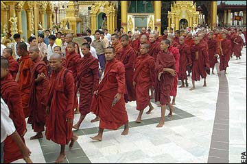 ေနာက္တခုက… အဲဒီတုန္းက သံဃာေခါင္းေဆာင္ေတြနဲ႔ က်ေနာ္တုိ႔ တိုင္ပင္သေဘာတူခဲ့တာတခုကလည္း၊ အေထြေထြ သပိတ္ႀကီးမွာ စီတန္း လမ္းေလွ်ာက္တဲ့အခါ၊ လူထု အဓိကအေနနဲ႔ လူေတြက အလယ္ကေနၿပီး၊ သံဃာေတာ္ေတြက ေဘးကေန ၀န္းရံလိုက္ပါဖုိ႔ ဆိုတဲ့ အစီအစဥ္ပါပဲ။