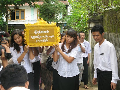 ယင္းအခမ္းအနားတြင္ လွဴဒါန္းမႈမ်ားျပဳလုပ္ၿပီးေနာက္ ပုညကာရီ (အခမဲ့) နာေရးကုသုိလ္ျပဳအသင္း၏ အသင္းသားမ်ားတို႔မွ ကြယ္လြန္သူ ေဒၚသန္း၏႐ုပ္အေလာင္းအား ထမ္းပိုးကာ နာေရးကူညီမႈ အသင္း(ရန္ကုန္)၏ အသင္းသူမ်ားထံသို႔ လြဲအပ္ထမ္းပိုးၿပီးေနာက္ နာေရးကူညီ မႈအသင္း (ရန္ကုန္) အသင္းသားမ်ားထံသို႔ပို႔ေဆာင္ကာ နိဗၺာန္ယာဥ္ေပၚသို႔တင္ေဆာင္ၿပီး ေရေ၀းသုႆန္သို႔ ပို႔ေဆာင္ကူညီ သၿဂႋဳလ္ ေပးခဲ့သည္။
