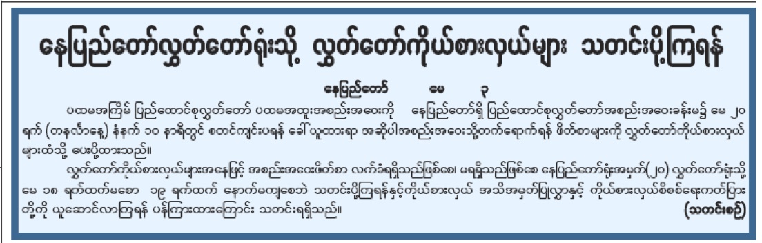 (ျမန္မာ့အလင္းသတင္းစာ ၄ ေမ ၂၀၁၃)
