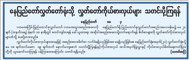 ပထမအႀကိမ္ ျပည္ေထာင္စုလႊတ္ေတာ္ “ပထမအထူးအစည္းအေဝး” ေမလ ၂၀ ရက္ေန႔တြင္စတင္က်င္းပမည္။