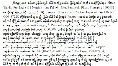 စကၤာပူအေျခစုိက္ Shwe Thandar ကုမဏီပုိင္ရွင္ ကုိစံဦးက ျမန္မာ ၄၂ ဦး၏ ပတ္စ္ပုိ႔ ႏွင့္ စင္ကၤာပူေဒၚလာ တသိန္းနီးပါး ယူျပီး ထြက္ေျပးသြားေၾကာင္း၊ ေနာက္ပုိင္းတြင္ ပတ္စ္ပုိ႔ မ်ား ျပန္လည္ ေပၚေပါက္လာေသာ္လည္း ကုိစံဦး ေပ်ာက္ဆုံးေနဆဲျဖစ္ေၾကာင္း သိရသည္။