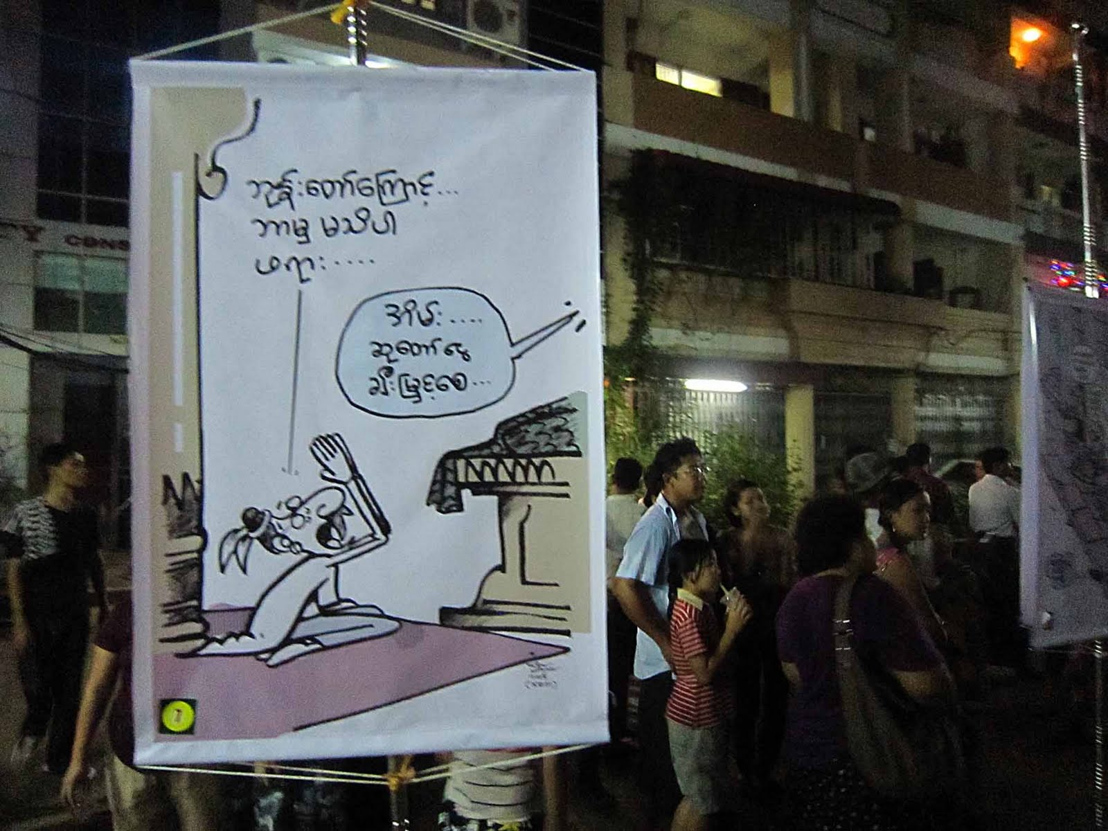ကာတြန္းလက္ရာေတြကုိ ဗီႏုိင္းစေပၚမွာ ေဖာ္ျပထားတဲ့ သီတင္းကြၽတ္ မီးထြန္းပြဲေတာ္တခုကုိ ရန္ကုန္ၿမိဳ႕၊ ပုဇြန္ေတာင္ၿမိဳ႕နယ္၊ လမ္း (၅၀) အလယ္ဘေလာက္မွာ ေအာက္တုိဘာ ၁၁၊ ၁၂၊ ၁၃ ရက္ေတြမွာ က်င္းပခဲ့ပါတယ္။