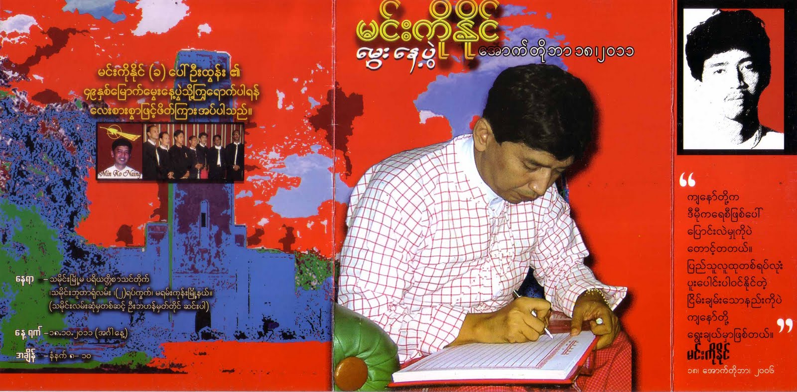ကုိမင္းကုိႏုိင္ေဆာင္ရြက္သယ္ပုိးခဲ့တဲ့ ဗကသသမုိင္းကုိ မိမိတုိ႔ကလည္း ဆက္လက္ေဆာင္ရြက္ေနေၾကာင္းကုိ ဗကသေမြးေန႔သ၀ဏ္လႊာမွာ မၿဖိဳးၿဖိဳးေအာင္က ဖတ္ၾကားခဲ့ပါတယ္။