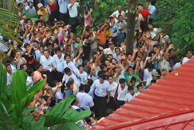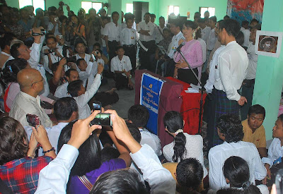 အခမ္းအနားကုိ ေဒၚေအာင္ဆန္းစုၾကည္၊ ဦးတင္ဦး၊ ဦး၀င္းတင္၊ ဗုိလ္ႀကီး၀င္းထိန္ အစရွိတဲ့ အဲန္အယ္ဒီေခါင္းေဆာင္းမ်ားႏွင့္ ၿမိဳ႕နယ္အသီးသီးမွ အဖြဲ႕၀င္မ်ား၊ ၈၈ မ်ဳိးဆက္မ်ား၊ ဗကသေက်ာင္းသားေက်ာင္းသူမ်ား၊ ႏုိင္ငံေရးအက်ဥ္းသားေဟာင္းမ်ား၊ ႏုိင္ငံေရးအက်ဥ္းသားမိသားစု၀င္မ်ားနဲ႔ ဖိတ္ၾကားထားတဲ့ မိတ္သဂၤမ်ား တေထာင္ခန္႔တက္ေရာက္ခဲ့ၾကပါတယ္။