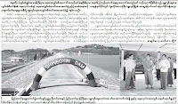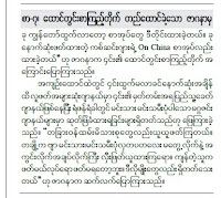အြန္လုိင္းစာဖတ္သူမ်ား သိျပီးသား ျဖစ္မွာပါ။ က်ေနာ္တုိ႔ ရန္ကုန္ထုတ္ဂ်ာနယ္မ်ားမွာလည္း အစုိးရမင္းတို႔ရဲ႕ ခြင့္ေပးသနားမႈေၾကာင့္ ဒီလုိဟာေတြ ေရးသားေဖာ္ျပခြင့္ ရေနေၾကာင္း သိေစလုိတာေၾကာင့္ ကူးယူ ေဖာ္ျပပါတယ္။