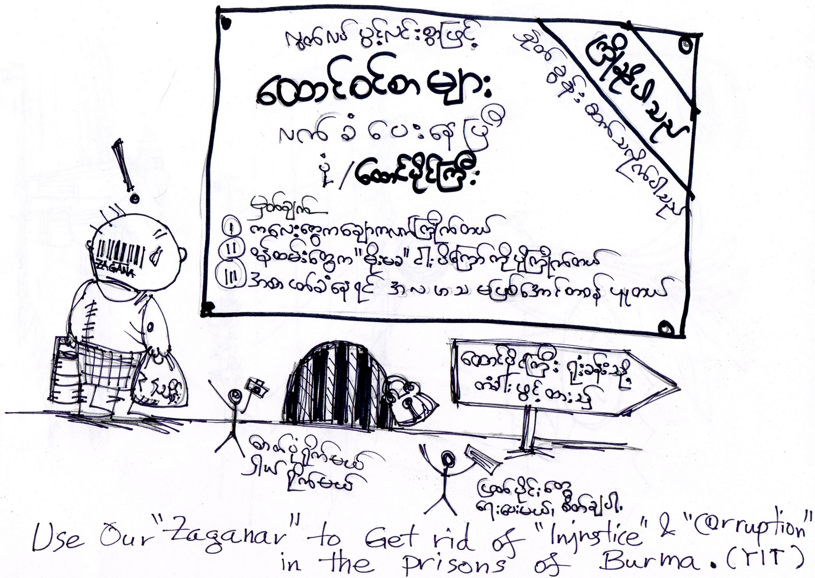 (Please use your”zaganar” to get rid of “Injustice” and”Corruption” in the Prisons of Burma – YIT)