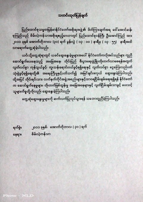 ျမန္မာ့ဒီမိုကေရစီေခါင္းေဆာင္ ေဒၚေအာင္ဆန္းစုၾကည္နဲ႔ ျပည္ေထာင္စုဝန္ႀကီး ဦးေအာင္ၾကည္တို႔ စတုတၳအႀကိမ္အျဖစ္ ေအာက္တိုဘာလ ၃၀ ရက္ေန႔က ရန္ကုန္ၿမိဳ႕ရွိ စိမ္းလဲ့ကန္သာ ဧည့္ေဂဟာမွာ ေတြ႔ဆံု ေဆြးေႏြးခဲ့ၾကပါတယ္