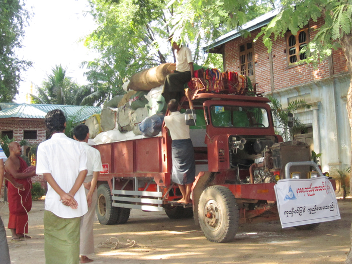 သဘာ၀ေဘးအႏၲရာယ္ဆိုးႀကီးျဖစ္ေသာ ေရေဘးဒုကၡသည္မ်ားအတြက္နာေရးကူညီမႈ အသင္း(ရန္ကုန္)သည္ ၂၅.၁၀.၂၀၁၁ ညေနပိုင္းတြင္ ေ႐ွ႕ေျပးကယ္ဆယ္ေရးအဖြဲ႔ကိုေစလႊတ္ကာ ၂၆.၁၀.၂၀၁၁ ေန႔တြင္ နာေရးကူညီမႈအသင္း(ရန္ကုန္)၏ အတြင္းေရးမွဴး ေဒၚေ႐ႊဇီးကြက္ႏွင့္အဖြဲ႔တို႔မွလိုက္ပါသြားခဲ့သည္။ ဦးစြာ ပခုကၠဴၿမိဳ႕႐ွိ စံနစ္သစ္ပုထိုးတိုက္ ဆရာေတာ္ ဦးေကာသလထံသို႔သြားေရာက္ ဦးတိုက္ကာ အကူအညီမရ႐ွိေသးေသာ ေရေဘးဒုကၡသည္ေက်း႐ြာမ်ားအား သြားေရာက္ စံုစမ္းကာလွဴဒါန္းမည့္ပစၥည္းမ်ားကို ၀ယ္ယူလွဴ၍ ေ႐ႊေခ်ာင္း၊ ေယာေခ်ာင္း ပတ္၀န္းက်င္႐ြာမ်ားကိုေလ့လာခဲ့သည္။