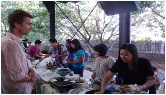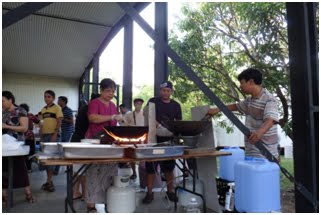 ဒါ၀င္ရွိ အင္တာေနရွင္နယ္လ္ ဗုဒၶစင္တာမွာ ေက်ာင္းရံပုံေငြအတြက္ ၿပီးခဲ့တဲ့ တနဂၤေႏြေန႔က အင္တာေနရွင္နယ္လ္ အစားအစာ ေရာင္းခ် တဲ့ေစ်းေရာင္းပြဲ က်င္းပျပဳလုပ္တယ္။ သီရိလကၤာ – ဗီယက္နမ္- တ႐ုတ္ -ျမန္မာ – အိႏၵိယ- ထိုင္း- ေအာ္စီ အစားအစာေတြ ခ်က္ျပဳတ္ေရာင္းခ် တယ္။ ေစ်းေရာင္းပြဲက တႏွစ္ႏွစ္ႀကိမ္ ဧၿပီလနဲ ့ နို၀ဘၤာလမွာ က်င္းပျပဳလုပ္ေလ့ရွိတယ္။ ျမန္မာက လူအနဲဆုံးေပါ့။ ကိုယ့္ရဲ႕အစားအစာ ေတြကို အမ်ားစားႏုိင္ေအာင္ စီမံခ်က္ျပဳတ္ေရာင္းခ်ရတာျဖစ္တယ္။ ျမန္မာစတိုင္ ဆီျပန္ခ်က္လို႔မရဘူး။ ကိုယ့္ကြန္ျမဴနတီနဲ႔ကိုယ္ စုေပါင္း ခ်က္ျပဳတ္ေက်ာ္ေလွာ္ၿပီး ေရာင္းရတဲ့ေငြကို ေက်ာင္းလွဴခဲ့တာေပါ့။ ျမန္မာမိသားစုေစ်းဆိုင္က ဒီႏွစ္ ကိုးရာေက်ာ္လွဴနိုင္ခဲ့တယ္။ စုစုေပါင္း ၉ ေထာင္ေက်ာ္ရတယ္။ မႏွစ္ကေတာ့ တေသာင္းေက်ာ္ရတာ။ ဒီႏွစ္ ၃ ေထာင္ေလာက္ ေလ်ာ့နဲသြားတယ္။ ေၾကျငာတာ နဲနဲေနာက္က်သြားလို႔ ထင္တယ္။ ညေန ၅ နာရီေလာက္ စေရာင္းတာ ညေန ၇ နာရီခြဲေလာက္ၿပီးတယ္။ ပြဲစၿပီဆိုေတာ့ ဒဲ့ဒိုးနဲ႔ ဗီယက္နမ္ သီလရွင္က စတိတ္စင္ ေပၚတက္ၿပီး ႏွစ္ပါးသြားတာ၀န္ယူရတယ္။ သီရိလကၤာကိုယ္ေတာ္က ခရီးသြားေနေတာ့ ေက်ာင္းမွာ သူနဲ႔ကိုယ္ဘဲရွိတာကိုး။ အဲ ႏွစ္ပါးသြား ဆိုတာက ဇာတ္သဘင္ထဲကလို ေမာင္မယ္သစၥာထားၿပီး၊ ခင္ … မလွမ္းနိုင္ရင္ … ေနာ္ဗ်ာ … ေမာင္ … ထမ္းလို႔ေခၚပါ့ … ဟ …ဟ မယ္ ဗ်ာ … လို႔ဆိုၿပီး ႏွစ္ပါးသြားရတာမဟုတ္ဘူး။ ၀ယ္ယူအားေပးသူေတြအတြက္ ဆုေတာင္းေမတၱာပို႔ေပးရတာပါ။ ဇာတ္သဘင္ထဲကလို ႏွစ္ပါးသြားရလို႔ကေတာ့ … ေရႊမန္းအဟဲေတြ .. ဟဲျပလိုက္ခ်င္တာေပါ့ခင္ဗ်။