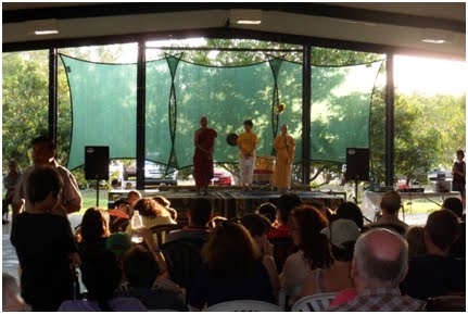 အဲ … ၀န္ႀကီးအစီအဥ္ၿပီးေတာ့ အကေတြနဲ ့ေဖ်ာ္ေျဖတင္ဆက္တယ္။ တ႐ုတ္နဂါးအက။ အသက္အငယ္ဆုံးက ၆၃ ႏွစ္ရွိၿပီျဖစ္တဲ့ ေအာ္စီ ဖိုးဖိုး ဖြားဖြားတို႔ရဲ႕ေအာ္စီအက။ နားလည္ေအာင္ေျပာရလွ်င္ အေနာက္တိုင္းအကေပါ့ဗ်ာ။ သူတို႔ၿပီးေတာ့ ေဘာလီ၀ုဒ္သီခ်င္းနဲ႔ အိႏၵိယ အက။ ေနာက္ မာရွယ္အက္ေခၚတဲ့ ကိုယ္ခံပညာျပပြဲနဲ႔ တင္ဆက္တယ္။ အခုတခါေတာ့ ဌာေနတိုင္းရင္းသား အေဘာ္ရီဂ်င္အကမပါဘူး။ လာေရာက္အားေပးသူေတြက အရင္ခါေလာက္ လူမမ်ားဘူး။ ဒါ၀င္မွာ မိုးရာသီ စျပီဆိုေတာ့ မိုးရြာမယ္ထင္တာေၾကာင့္ မလာတာလဲျဖစ္ႏုိင္ တယ္။