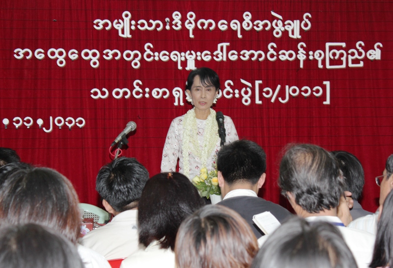 ႏုိင္ငံေရးႏွင့္ ပတ္သတ္ၿပီးအႏွစ္ႏွစ္ဆယ္ေက်ာ္ ကာလအတြင္း အၾကမ္းမဖက္တဲ့ လမ္းစဥ္ႏွင့္ ဒီမုိကေရစီရရွိေရးအတြက္ ေဆြးေႏြးညႈိႏႈိင္းမႈ လမ္းစဥ္ကုိ ခ်မွတ္ခဲ့သျဖင့္ ယခုႏွစ္တြင္ ထူးထူးျခားျခား ႏုိင္ငံေရး ျဖစ္စဥ္အရသမၼတ ဦးသိန္းစိန္တုိ႔ ေတြ႔ဆုံမႈရလဒ္အရ အေျပာင္းအလဲေတြ ရွိခဲ့သည္ဟု ေဒၚေအာင္ဆန္းစုၾကည္ကမွတ္ခ်က္ခ် ေျပာဆုိသည္။
