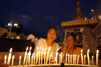 ယေန႔ညဦးပုိင္းက ရန္ကုန္ျမိဳ႕ ဗုိလ္တေထာင္ဘုရားတြင္ ေတြ႔ရေသာ မစုစုေႏြး (ဓာတ္ပုံ-Reuters)
