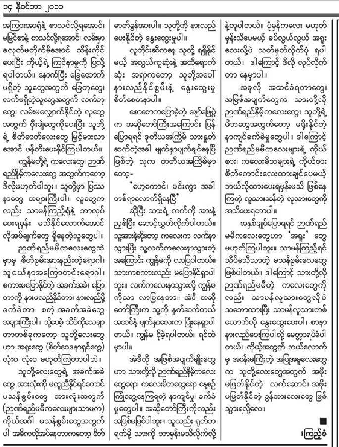 ကလ့ဲစားေခ်နုိင္ခ့ဲသည္၊ ဦးေႏွာက္ျဖင့္ ကစားလာသည္ ဆုိတ့ဲ စကားလုံးေတြက မွတ္သားစရာပါပဲ။