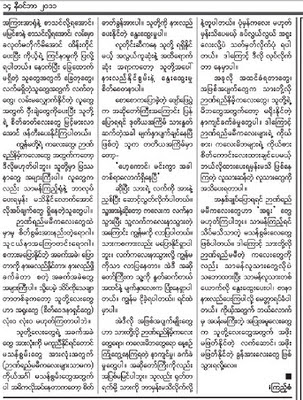 ဒါက အယ္ဒီတာထံ ေပးစာ ျဖစ္ပါတယ္။ ၂ ေၾကာင္းေျမာက္ ဖတ္ေနတုန္း ဆက္ဖတ္ခ်င္စိတ္ ကုန္သြားပါလိမ့္မယ္။ အေရးအသားနဲ႔ မဆုိင္ပါ။ ေရးသားသူ ရဲအရာရိွေဟာင္း ညႊန္ခ်ဳပ္ေဟာင္းနဲ႔လည္း မဆုိင္ပါ။ ေကာ္လံအက်ယ္ႀကီးျဖစ္ေနေတာ့ ဖတ္ရတာ ရႈပ္ေထြး မ်က္လုံးေညာင္းတ့ဲအတြက္ ဆက္ဖတ္ခ်င္စိတ္ ကုန္သြားတာ ျဖစ္ပါတယ္။