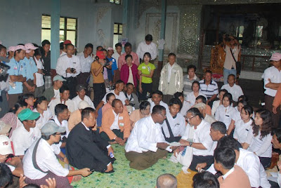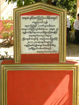 အျပန္လမ္းခရီးေပၚတြင္ အင္းမ နာေရးကူညီမႈအသင္းကိုလည္း ၀င္ေရာက္ေလ့လာအားေပးျဖစ္ခဲ့သည္။ ထုိ႔ေနာက္ သာယာ၀တီၿမိဳ႕ “ၿငိမ္း ခ်မ္းေရး ကုသုိလ္ျဖစ္ေဆးခန္းႏွင့္ နာေရးကူညီမႈအသင္း”သို႔ ၀င္ေရာက္ေလ့လာခဲ့ၿပီးေနာက္ ဆရာစံ က်ဆံုးျခင္း ႏွစ္ (၈၀) ျပည့္ အထိမ္း အမွတ္က်င္းပရာ သီရိမဂၤလာ ေက်ာင္းတိုက္သို႔ ၀င္ေရာက္ျဖစ္ခဲ့သည္။ သီရိမဂၤလာေက်ာင္းတိုက္သို႔ ၀င္ေရာက္ရာ မုဒ္ဦးေက်ာက္တိုင္ တြင္ “ဥံဳအရဟံ၊ ဂတိသစၥာေတြနဲ႔ ဂဠဳန္သရဏံ ဂစၧာမိေတြျဖင့္ ကန္ေတာ့” ဟူေသာ စာတမ္းအား ခ်ိတ္ဆြဲထားသည္ကို ေတြ႔ျမင္ခဲ့ရသည္။