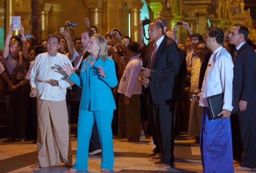 ရန္ကုန္ျမိဳ႕ ေရႊတိဂုံေစတီတြင္ ယေန႔ ေတြ႔ရေသာ ဟီလာရီ ကလင္တန္ (ဓာတ္ပုံ – Paula Bronstein/Getty Images)