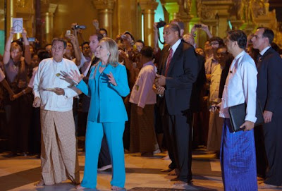 တခ်ိန္တည္းမွာပင္ အေမရိကန္ ႏုိင္ငံေရးသမား တခ်ဳိ႕က ကလင္တန္၏ ျမန္မာျပည္ခရီးကုိ စုိးရိမ္တႀကီး ေ၀ဖန္ေနၾကသည္။ ျမန္မာျပည္သုိ႔ ၀န္ႀကီး သြားေရာက္ျခင္းသည္ ျမန္မာအစုိးရအား အားေပးဂုဏ္ျပဳရာ ေရာက္သည္ဟု ၎တုိ႔က ဆုိသည္။