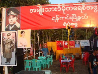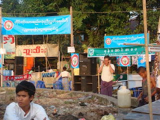 တဆညပါတီဆိုုင္၊ ရန္ေအာင္စာေပဆိုုင္၊ အင္န္အယ္ဒီပါတီဆိုုင္တိုု႔ကိုု ျမင္ေတြ႔ရစဥ္