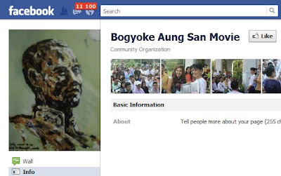 Facebook တြင္ Bogyoke Aung San Movie ဟူေသာ စာလုံးမ်ားကုိ ထည့္သြင္းရွာေဖြပါက ထုိစာမ်က္ႏွာသုိ႔ ေရာက္ႏုိင္မည္ ျဖစ္သည္။