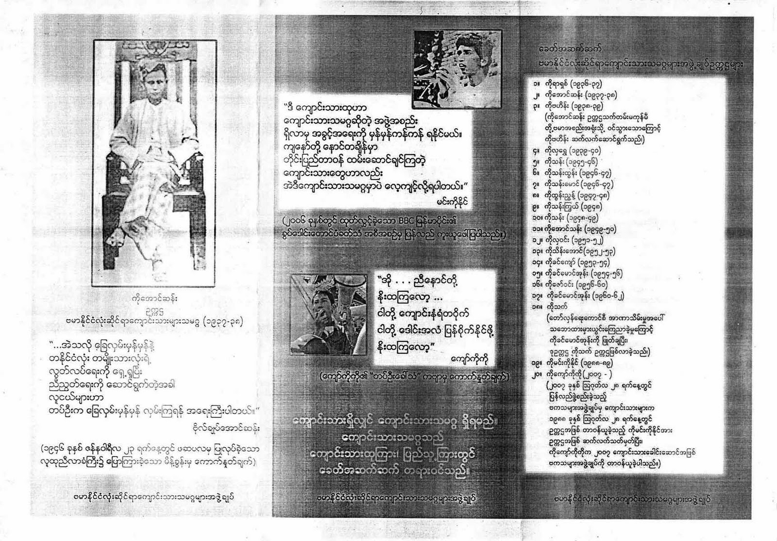 ကဗ်ာဆရာ ကုိေလးေအာင္ရဲ႕ ဗုိလ္ေအာင္ေက်ာ္တမ္းခ်င္းကဗ်ာကုိ ဗကသမွ မင္းေသြးသစ္နဲ႔ ကဗ်ာေနထက္ႏုိင္တုိ႔ ရြတ္ဆုိခဲ့ၾကပါတယ္။