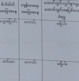 အင္တာနက္မွတဆင့္ လက္ခံရရွိေသာၾကံ့ဖြံ႔အစုုိးရထံ အက်ဥ္းေထာင္အာဏာပိုုင္မ်ား၏ (သီးသန္႔၊ သာမန္သီးသန္႔ ႏွင့္ေထာက္လွမ္းေရးအက်ဥ္းသားမ်ားအေၾကာင္း) လ်ဳိ႔၀ွက္လစဥ္အစီရင္ခံစာရင္းတြင္ ၎တိုု႔၏စိတ္ဓာတ္အေျခအေနႏွင့္ ေထာင္တြင္းလႈပ္ရွားမႈတိုု႔ကိုုပါ သီးျခားေကာ္လံ ၂ ခုုျဖင့္မွတ္ခ်က္ေပး တင္ျပထားသည္ကိုု ေတြ႔ရသည္။