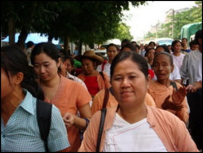 ေျဖး ။ အဲဒီေနာက္ စက္တင္ဘာ ၂၇၊ ၂၀၀၄ ခုုႏွစ္ ရက္ေန႔မွာ ရန္ကုန္ၿမိဳ႕U.N.D.P ရုံးကိုု သြားေရာက္ျပီးေတာ့ အခ်က္(၃)ခ်က္ကို ေဒၚေနာ္အုန္းလွ အပါအဝင္ (၃၅) ဦးသြားေရာက္ေတာင္းဆိုခဲ့ပါတယ္။