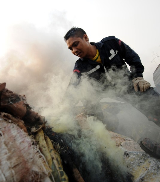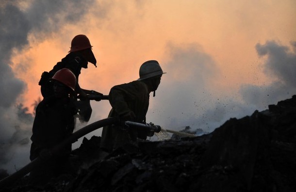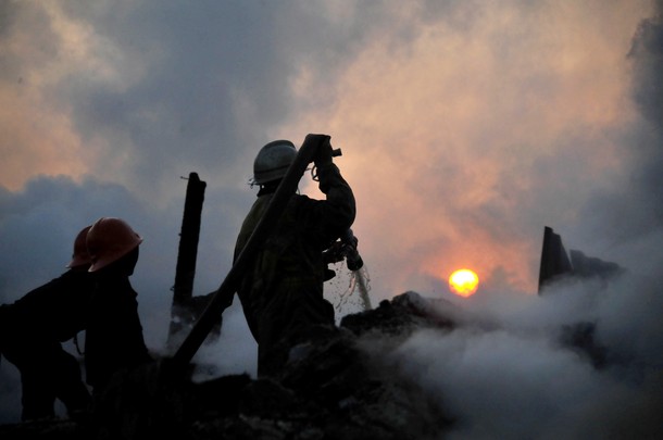 မီးသတ္သမားမ်ားႏွင့္ မီးေလာင္ျပင္မွ မီးသတ္ကားတစီး (ဓာတ္ပုံမ်ား – Getty Images)