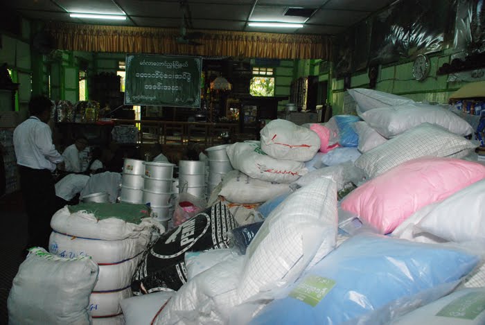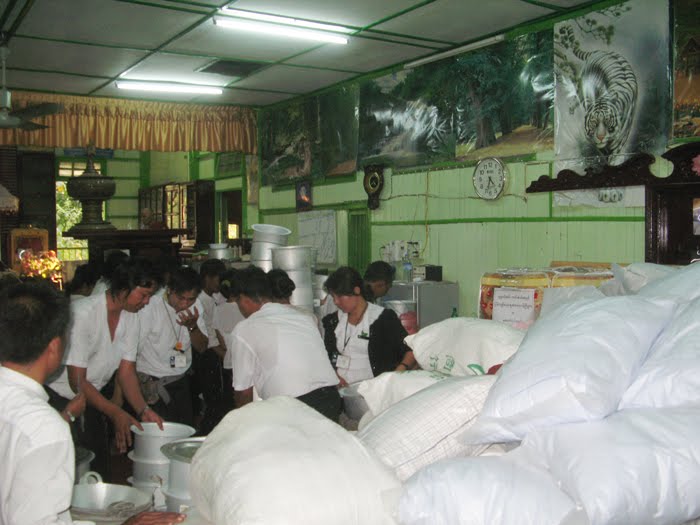 ထိုသို႔ လွဴဒါန္းမႈျပဳလုပ္ရာတြင္ ရန္ကုန္ျပည္သူ႔ေဆး႐ံုႀကီးမွ ေဆး၀ါးအလွဴေငြ လွဴဒါန္းၿပီး၍ ျပန္လာ ၾကေသာ ေဒၚသန္းျမင့္ေအာင္၊ ေဒၚေ႐ႊ ဇီးကြက္ႏွင့္ အသင္းသူ/သားမ်ားႏွင့္ ခ်ိတ္ဆက္ပူးေပါင္းကာ မဂၤလာေတာင္ၫႊန္႔ၿမိဳ႕နယ္႐ွိ “မဟာ၀ိဇယာရာမတိုက္ ပုသိမ္ၫႊန္႔ရာေက်ာ္ ေက်ာင္းႀကီး”႐ွိ ေက်ာင္းထိုင္ဆရာ ေတာ္ႀကီးထံတြင္ ကိုယ္တိုင္ကုိယ္က်စုေပါင္း၍ လွဴဒါန္းမႈကို ျပဳလုပ္ႏိုင္ခဲ့သည္။ ပုသိမ္ၫႊန္႔ရာေက်ာ္ ေက်ာင္း ႀကီးအတြင္း႐ွိ “ေအာင္ၾသဘာသိဒိၶဓမၼာ႐ံု” ၌ ေနထိုင္ေနရၾကေသာ မီးေဘးဒုကၡသည္မ်ားအား ၀င္ေရာက္၍ အားေပးစကားမ်ား ေျပာ ၾကားခဲ့ပါသည္။