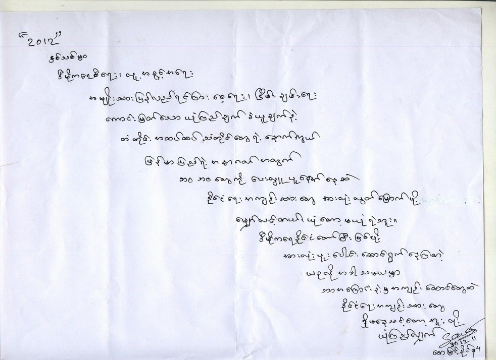 ႏိုုင္ငံေရးအက်ဥ္းသားေဟာင္းမ်ား၏အက်ဥ္းေထာင္တြင္းကရဲေဘာ္မ်ားသိုု႔ ႏွစ္သစ္ႏႈတ္ခြန္းဆက္စာမ်ားပိုု႔