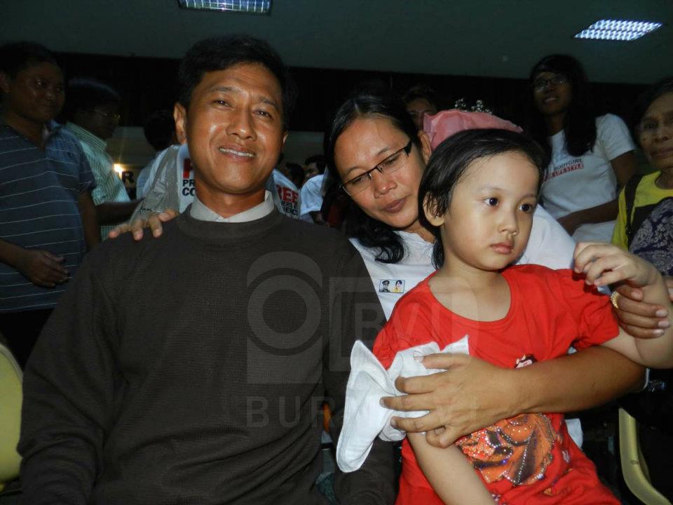 ယေန႔ နယ္ေထာင္မ်ားမွ ျပန္လည္ လြတ္ေျမာက္လာေသာ ကုိဂ်င္မီ၊ မနီလာသိန္း တုိ႔သည္ ၎တုိ႔၏ သမီးငယ္ႏွင့္ ရန္ကုန္တြင္ ျပန္ဆုံခ့ဲၾကသည္ (ဓာတ္ပုံ-ဘားမားဗီေဂ်မီဒီယာနက္၀ပ္)