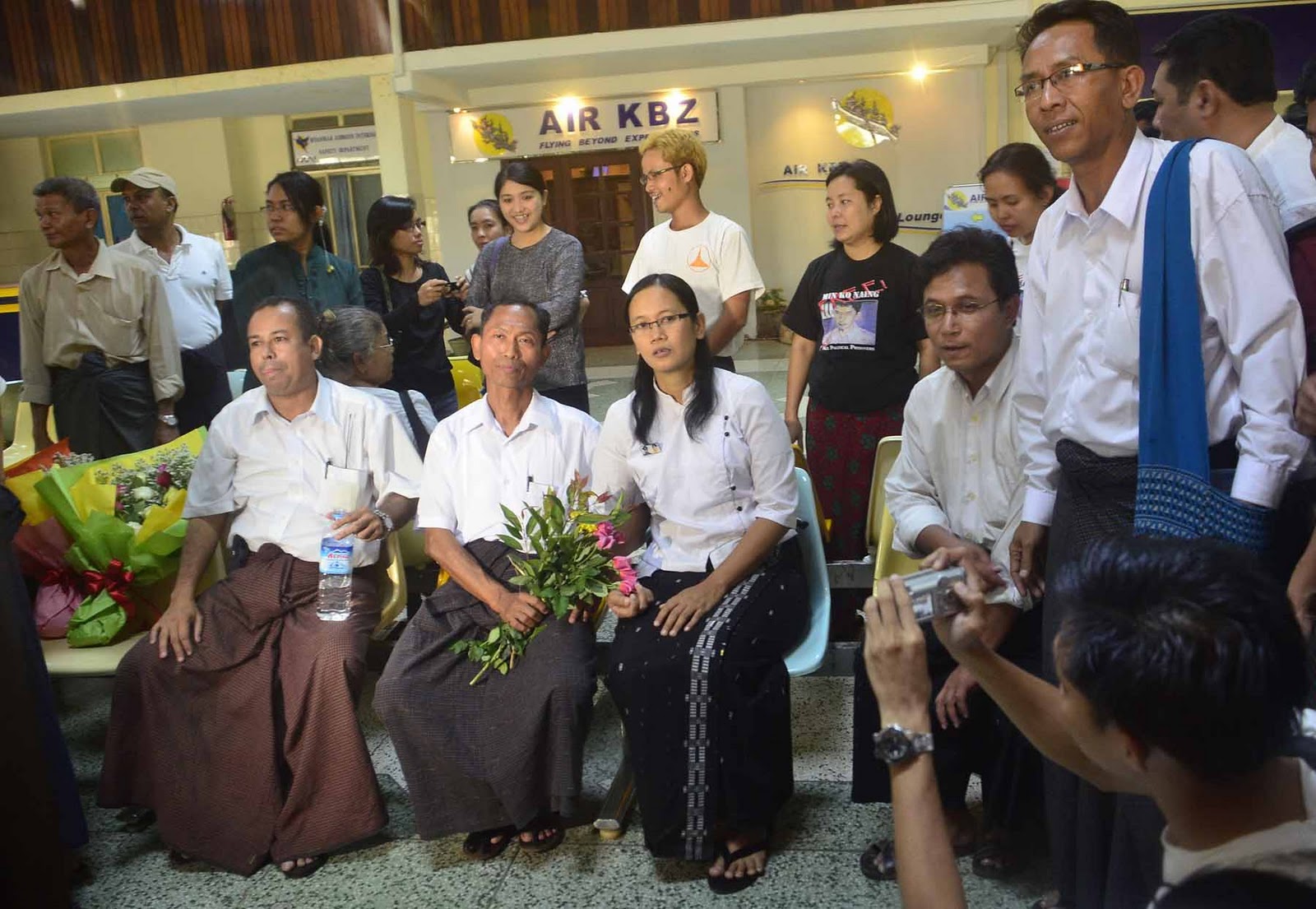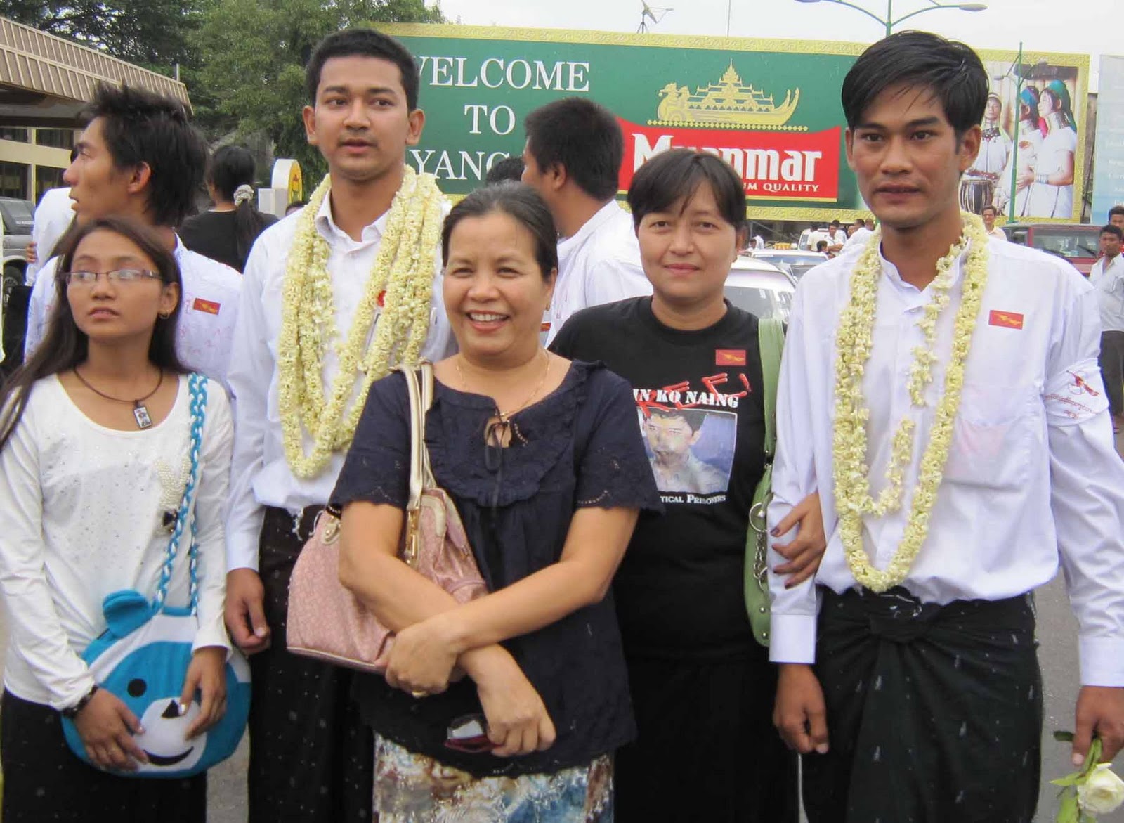 မဂၤလာဒုုံေလဆိပ္မွာ ေရာက္ရွိလာတဲ့ ႏိုုင္ငံေရးအက်ဥ္းသားမ်ားနဲ႔ မိသားစုုမ်ား