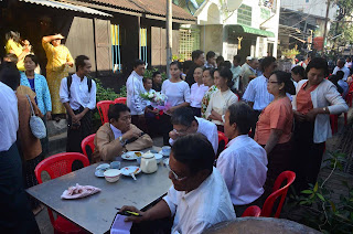 ဆြမ္းေကြၽးအလွဴကုိ ေဒၚေအာင္ဆန္းစုၾကည္၊ ဦးတင္ဦး၊ ဦး၀င္းတင္နဲ႔ အမ်ဳိးသားဒီမုိကေရစီအဖြဲ႕ခ်ဳပ္ အလုပ္အမႈေဆာင္မ်ား၊ အဖြဲ႕၀င္မ်ား၊ ႏုိင္ငံေရးအက်ဥ္းသားေဟာင္းမ်ား တက္ေရာက္ခဲ့ၾကပါတယ္။