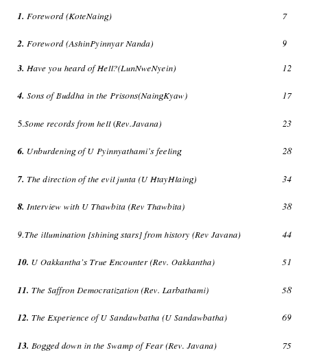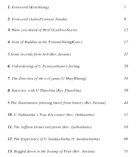 ဟုုစာအုုပ္စီစဥ္သူ ဆရာေတာ္ ဦးပညာနႏၵက မိုုးမခသိုု႔ ေျပာၾကားသည္။ ဆရာေတာ္သည္မိုုးမခတြင္ အရွင္ပညာနႏၵအမည္ျဖင့္ သံဃာေတာ္တိုု႔၏ ျမန္မာစစ္အာဏာရွင္ေအာက္ရုုန္းကန္ စြန္႔လႊတ္သာသနာျပဳေနသည့္ မွတ္တမ္းမ်ားကိုု အခန္းဆက္ မွတ္တမ္းတင္ျပဳစုုတင္ဆက္ေနသည့္ စာေရးသူ ပုုဂၢဳိလ္တဦးျဖစ္သည္။