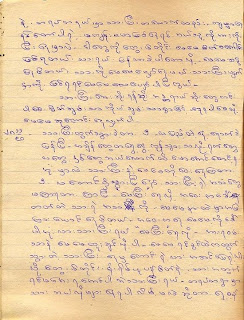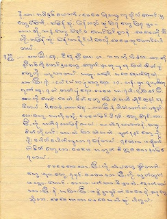 ညီမေလးျပန္သြားၿပီး လအနည္းငယ္အၾကာမွာအိမ္က ညီညီမေတြက အေမ မေသခင္ ရုိးရုိးဗလာစာအုပ္ကေလးထဲမွာ က်ေနာ့ကုိ သတိရတုိင္းေရးလုိက္၊ ဘယ္သူမွမျမင္ေအာင္ ဖြက္ထားလုိက္နဲ႔ အေမ့အေလာင္းေျမက်မွအေမ့အိပ္ယာရွင္းရင္းနဲ႔ ဖ်ာေအာက္ မွာေတြ႔ခဲ့ၾကတဲ့ ဘယ္သူမွမသိခဲ့တဲ့ဒုိင္ယာရီစာအုပ္ေလးကုိ က်ေနာ့ဆီကုိ ပုိ႔ေပးလုိက္ၾကတယ္။