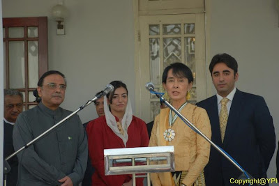 ျမန္မာ့ဒီမိုကေရစီေခါင္းေဆာင္ႏွင့္ ၁၉၉၀ ၿငိမ္းခ်မ္းေရးႏိုဘယ္လ္ဆုရွင္ ေဒၚေအာင္ဆန္းစုၾကည္အား ပါကစၥတန္ႏိုင္ငံ၏ အျမင့္ဆံုးဆုတံဆိပ္ျဖစ္သည့္ ဘင္နီဇီယာဘူတို ဒီမိုကေရစီဆုကို ယင္းႏိုင္ငံမွ သမၼတ အာဆစ္ဖ္ အာလီဇာဒါရီ က ေဒၚေအာင္ဆန္းစုၾကည္၏ ေနအိမ္တြင္ ယမန္ေန႔ ေန႔လယ္က ခ်ီးၿမွင့္ခဲ့သည္။