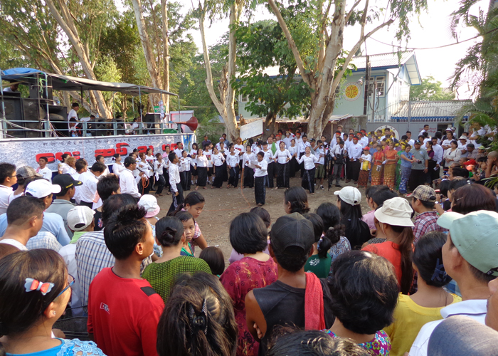 “ေဒါင္းတို႔မ်ိဳးဆက္” ၿငိမ္းခ်မ္းေရးသႀကၤန္ သံခ်ပ္အဖြဲ႔၏ ပြဲဦးထြက္အျဖစ္ ၈၈ မ်ိဳးဆက္ေက်ာင္းသား ေခါင္းေဆာင္ ကိုမင္းကိုႏိုင္ မွဦးေဆာင္၍ နာေရးကူညီမႈအသင္း(ရန္ကုန္)သို႔ ၁၃.၄.၂ဝ၁၃ ရက္ေန႔ ညေန (၄းဝဝ) နာရီအခ်ိန္တြင္ သုခခန္းမေဆာင္ႀကီးသို႔လာရာက္၍ ေဖ်ာ္ေျဖတင္ဆက္ခဲ့ၿပီး နာေရးကူညီမႈ အသင္း(ရန္ကုန္)၌ ေဒါင္းအလံစိုက္ထူခဲ့သည္။ နာေရးကူညီမႈအသင္း(ရန္ကုန္)မွ ၂ဝ၁၃ ခုႏွစ္ သႀကၤန္ အခ်ိန္ကာလမွစတင္၍ အသင္းသား/သူမ်ားျဖင့္ ဖြဲ႔စည္းလိုက္သည့္ “ေပးဆပ္သူမ်ား” လူမႈေရးသံခ်ပ္အဖြဲ႔ သည္လည္း ၁၄.၄.၂ဝ၁၃ ရက္ေန႔ ညေန (၄းဝဝ) နာရီအခ်ိန္တြင္ ၈၈ မ်ိဳးဆက္ ၿငိမ္းခ်မ္းေရးႏွင့္ ပြင့္လင္း လူ႔အဖြဲ႔အစည္း႐ံုးတည္႐ွိရာသို႔ ဥကၠ႒ ဦးေက်ာ္သူ ကိုယ္တိုင္သြားေရာက္၍ တစ္ဦးႏွင့္တစ္ဦး၊ တစ္ဖြဲ႔ႏွင့္ တစ္ဖြဲ႔ ညီညြတ္စြာျဖင့္ အမိျမန္မာျပည္ႀကီး ၿငိမ္းခ်မ္းေရးရ႐ွိေစရန္ ၿငိမ္းခ်မ္းေရးျပ ယုဂ္ျဖစ္သည့္ ဂ်ဳိးငွက္ျဖဴ ဝဲပ်ံခဲ့ေတာ့သည္။