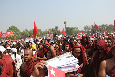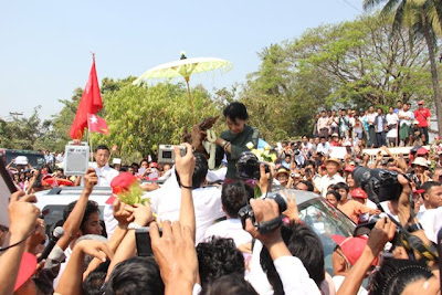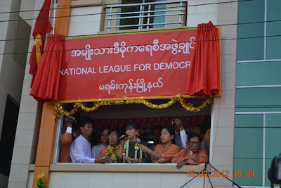 NLD ဥကၠ႒ ေဒၚေအာင္ဆန္းစုၾကည္သည္ မရမ္းကုန္းျမိဳ႕နယ္တြင္ ၾကားျဖတ္ေရြးေကာက္ပဲြ၀င္မည့္ ေဒၚေမ၀င္းျမင့္၊ လွည္းကူးတြင္ ၀င္ျပိဳင္မည့္ ဦးၿဖိဳးမင္းသိန္းတုိ႔အတြက္ ထုိေဒသမ်ားသုိ႔ သြားေရာက္ မဲဆြယ္ စည္းရုံးခ့ဲသည္။