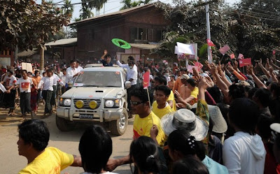 ယေန႔ ျမစ္ႀကီးနားျမိဳ႕ ေရာက္ ေဒၚေအာင္ဆန္းစုၾကည္ (ဓာတ္ပုံ – စုိးေဇယ်ာထြန္း – Reuters)