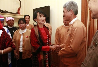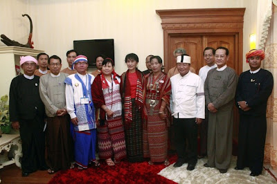 NLD ေခါင္းေဆာင္ ေဒၚေအာင္ဆန္းစုၾကည္သည္ ေနျပည္ေတာ္တြင္ လႊတ္ေတာ္တက္ေနၾကသည့္ အနယ္နယ္မွ လႊတ္ေတာ္ကုိယ္စားလွယ္တခ်ဳိ႕ႏွင့္ ယေန႔ နံနက္ပုိင္းတြင္ ေတြ႔ဆုံခ့ဲသည္။