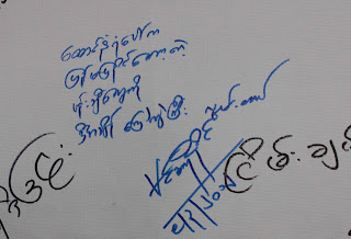 က်ေနာ္တို႔ ျပပြဲက်င္းပရာ ပန္းဆိုးတန္းလမ္း အထက္ဘေလာက္မွာရွိတဲ့ စာေပေလာက စာအုပ္ဆိုင္ကုိ ၉း၀၀ နာရီ မထိုးခင္ေရာက္ပါတယ္။ လူေတြ ေတာ္ေတာ္မ်ားေနျပီ။ ခန္းလံုးျပည့္ ၾကိတ္ၾကိတ္တိုးပါပဲ။ ျပပြဲ မွာ ျပသတဲ႔ ပန္းခ်ီကားေတြကလည္း ျပပြဲ နံရံမွာ တိုးတိုးေ၀႔ေ၀႔ ခ်ိတ္ဆြဲထားပါတယ္။
