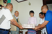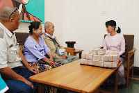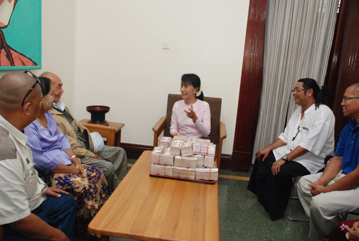 ျမန္မာႏို္င္ငံ႐ုပ္႐ွင္အစည္းအ႐ံုး၌ ဆႏၵမဲေပးၿပီးသည္ႏွင့္တၿပိဳင္နက္ တကၠသိုလ္ရိပ္သာလမ္း၊ အမွတ္ (၅၄) ရွိ အေမေဒၚေအာင္ဆန္းစုၾကည္ ေနအိမ္သို႔ နံနက္ (၁၀း၃၀) နာရီမတိုင္မီ အေရာက္သြားခဲ့ရသည္။ ကြၽန္ေတာ္တို႔ျခံေရွ႕သုိ႔ေရာက္႐ွိၿပီး မၾကာမီ Townace ေမာ္ေတာ္ယာဥ္ (၅) စီး ေရွ႕ဆင့္ေနာက္ဆင့္ေရာက္လာခဲ့သည္။ ထုိ႔ေနာက္ အေမေဒၚေအာင္ဆန္းစုၾကည္ ၿခံဝန္းအတြင္းသို႔ဝင္ေရာက္ခဲ့ၾကသည္။ အေမ့အိမ္ အတြင္း ဧည့္ခန္းေဆာင္တြင္ ေခတၱေနရာယူေနစဥ္အတြင္း အေမ ေဒၚေအာင္ဆန္းစုၾကည္ ဧည့္ခန္းေဆာင္အတြင္းသို႔ ေရာက္လာေတာ့သည္။ ကၽြန္ေတာ္သည္ ကြၽန္ေတာ္ႏွင့္အတူပါလာေသာ ေ႐ႊစင္စၾကၤာ ခရီးသြားပို႔ေဆာင္ေရးမိသားစုႏွင့္ အေမ့အား မိတ္ဆက္ေပးၿပီးသည့္ေနာက္ ဦးသန္းေမာင္ (ေမာ္ကြန္းဝင္ပထမအဆင့္) သမီး ေဒၚလွရီ (ေရႊစင္စႀကၤာ မိသားစု) မွ ဗုိလ္ခ်ဳပ္ေအာင္ဆန္း ႐ုပ္႐ွင္ဇာတ္ကား ႐ိုက္ကူးေရးအတြက္ အလွဴေငြ သိန္းတစ္ေထာင္က်ပ္တိတိအား အေမေဒၚေအာင္ဆန္းစုၾကည္လက္ဝယ္သို႔ လွဴဒါန္းေပးအပ္ခဲ့ၾကသည္။ ထုိ႔ေနာက္ အေမႏွင့္ အလွဴ႐ွင္မိသားစုျဖစ္ေသာ ဦးသန္းေမာင္ (ေမာ္ကြန္းဝင္ ပထမအဆင့္) ႏွင့္ ဗိုလ္ခ်ဳပ္ေအာင္ဆန္းတို႔ ေမာ္လၿမိဳင္ၿမိဳ႕တြင္ ဆံုေတြ႔ခဲ့ ရပံုစသည့္ ေ႐ွးေဟာင္းေႏွာင္းျမစ္မ်ားအား လြမ္းဆြတ္ဖြယ္ေျပာၾကားခဲ့ၿပီး ဗိုလ္ခ်ဳပ္႐ုပ္႐ွင္ဇာတ္ကားႏွင့္ပတ္သက္၍ ကြၽန္ေတာ္မွ ဖိဖိစည္းစည္ တာဝန္ မယူေပးႏိုင္မႈမ်ားကို ခြင့္လႊတ္နားလည္ပါရန္ အေမ့အားေျပာၾကားခဲ့သည္။ ကြၽန္ေတာ္သည္ နာေရးကူညီမႈအသင္း (ရန္ကုန္) မွတ္ပံုတင္ျပန္ လည္ရ႐ွိၿပီျဖစ္ပါ၍ လူမႈေရးကိစၥမ်ားအား ဆထပ္ထမ္းပုိး လုပ္ေဆာင္ေနရပါေၾကာင္း၊ အေမကလည္း သူသည္လည္း ေရြးေကာက္ပြဲကာလ ျဖစ္ေနေသာေၾကာင့္ ဗိုလ္ခ်ဳပ္ေအာင္ဆန္းဇာတ္ကားကိစၥရပ္မ်ားအား ဖိဖိစည္းစည္းမလုပ္ႏိုင္ေသးေၾကာင္း မၾကာမီကာလတြင္ ယင္းဇာတ္ ကားအတြက္ ထဲထဲဝင္ဝင္ လုပ္ကိုင္ေဆာင္႐ြက္ေတာ့မည္ျဖစ္ေၾကာင္း ေျပာၾကားခဲ့ၾကသည္။ အလွဴ႐ွင္မိသားစုမ်ားႏွင့္ စုေပါင္းအမွတ္တရ မွတ္တမ္းတင္ ဓါတ္ပံုမ်ား႐ိုက္ကူးၾကကာ ယခုလိုလွဴဒါန္းမႈအတြက္ မ်ားစြာေက်းဇူးတင္႐ွိပါေၾကာင္း အေမမွေျပာၾကားကာ အလွဴ႐ွင္မိ သားစုမ်ားႏွင့္တကြ ကၽြန္ေတာ္တို႔ အေမ့အားႏႈတ္ဆက္ၿပီး အေမ့ျခံမွ ျပန္လည္ထြက္ခြာခဲ့ၾကသည္။