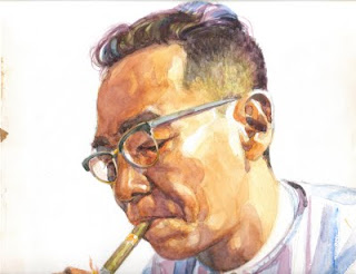 ဘယ္လက္နံရံမွာေတာ့ ဆရာ ရဲ႔ နာမည္ေက်ာ္ကဗ်ာ ပ်ဥ္းမ ငုတ္တို ကို ခံစားေရးဖြဲဲ႔ထားတဲ့ ဆီေဆးပန္းခ်ီကားခ်ပ္ၾကီးတခ်ပ္ကိုလည္းေတြ႔လိုက္ရပါတယ္။ ဆရာဦးနန္ေ၀ရဲ႔ လက္ရာပါပဲ။ ဒီပန္းခ်ီကားကို ဆရာဦးနန္ေ၀က ဆရာမင္းသု၀ဏ္ကို ျမန္မာစာေကာ္မရွင္မွ ဆရာ အနားယူဖို႔ ဦးေန၀င္းရဲ႔ အမိန္႔ေပးခံရျပီး ခ်ိန္ ဆရာ့ကိုတပည့္ေတြက ၀ိုင္း ကန္ေတာ့တဲ့ ကန္ေတာ့ပြဲမွာ လက္ေဆာင္ေပးခဲ့တယ္ဆိုတဲ့ ပံုျပင္ကေလးတပုဒ္ ကိုလည္း က်ေနာ္ေက်ာင္းသားဘ၀က ၾကားခဲ့ဘူးပါတယ္။ အဲဒီတုန္းကတည္းက ဒီပန္းခ်ီကားကို က်ေနာ္စိတ္၀င္စားခဲ့တာပါ။ ေနာင္ ကန္႔ေကာ္ရြာ ပန္းခ်ီျပပြဲေတြမွာ အဲဒီ ပန္းခ်ီကားရဲ႔ မိတၱဴ ကို ျပသထားတာေတြ႔ခဲ့ရပါတယ္။ အခုေတာ့ ပန္းခ်ီကားအစစ္ကို အနီးကပ္ ၾကည္ခြင့္ရခဲပါျပီ။ ဆရာ ဘ၀ ဆရာကဗ်ာကို တေရးေရး ျပန္ေတြးမိျပီး စိတ္လႈပ္ရွားမိပါတယ္။ အခု အခ်ိန္မွာ ျမန္မာျပည္ဟာ ေလေျပထဲတြင္ ငယ္ရုပ္ဆင္ေနတဲ့ အခ်ိန္မဟုတ္ပါလား။