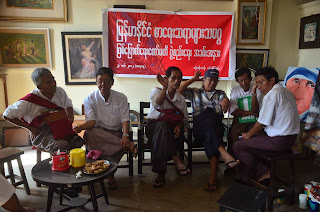 ျမန္မာႏိုုင္ငံစာေရးဆရာမ်ား သမဂၢျဖစ္ေျမာက္ေရးေကာ္မီတီ ဖြဲ႔စည္းေရးအခမ္းအနားကိုု ရန္ကုုန္ျမိဳ႔၊ ပန္းဆိုုးတန္းလမ္း၊ အထက္ဘေလာက္မွာရွိတဲ့ ပန္းဆိုုးတန္း ပန္းခ်ီျပခန္းအေပၚထပ္မွာ ယမန္ေန႔ ေန႔လည္ ၂ နာရီက က်င္းပခဲ့ပါတယ္။