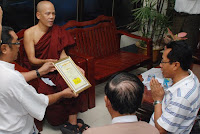 ၂၅. ၃. ၂၀၁၂ (တနဂၤေႏြ) ေန႔ နံနက္ (၈း၀၀) နာရီအခ်ိန္တြင္ နာေရးကူညီမႈအသင္း (ရန္ကုန္) သို႔ ဓမၼေစတီဆရာေတာ္ ဦးေကာသလႅႏွင့္ သံဃာေတာ္မ်ား၊ တပည့္၊ ဒါယကာ/မမ်ားျဖင့္ ႂကြေရာက္ကာ ဆရာေတာ္ႀကီး၏မယ္ေတာ္ႀကီး …… အားရည္စူး၍ လူနာကုတင္၊ လက္တြန္း လွည္း၊ ေလးေခ်ာင္းေထာက္အကူပစၥည္းႏွင့္ တေန႔တာ လူနာမ်ားအတြက္ ေဆးဝါးကုသစားရိတ္ အလွဴေငြ (၇) သိန္းက်ပ္တိတိအား လာ ေရာက္လွဴဒါန္းခဲ့သည္။