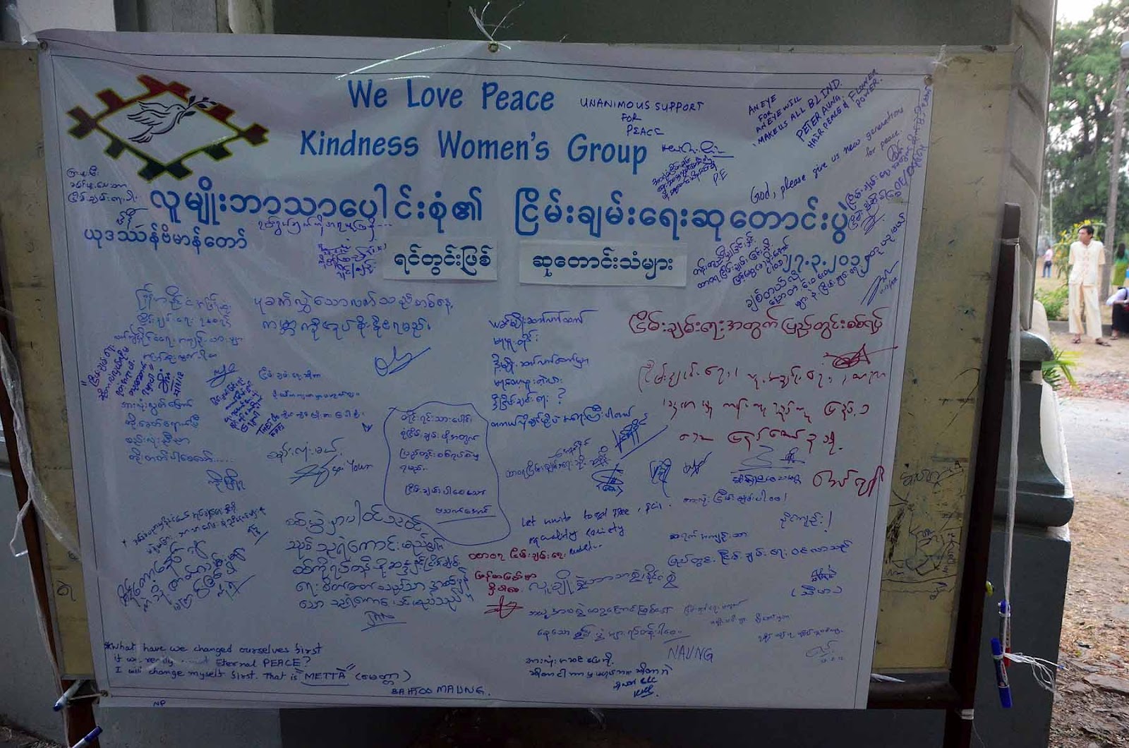 လူမ်ဴိးဘာသာေပါင္းစုု ျငိမ္းခ်မ္းေရးဆုုေတာင္းပြဲကိုု ယမန္ေန႔ ညေန ၄ နာရီ မွ ၆ နာရီခြဲအထိ ရန္ကုုန္တကၠသိုုလ္၀င္း ယုုဒသန္ခန္းမမွာ က်င္းပခဲ့ပါတယ္။