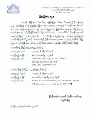 ျမန္မာသံအမတ္ၾကီး ဆန္ဖရန္ႏွင့္အယ္လ္ေအက ျမန္မာမ်ားႏွင့္ ေတြ႔ဆုုံမည္