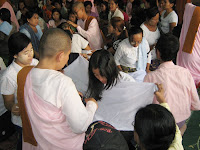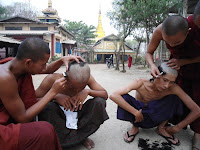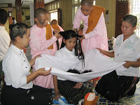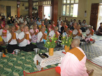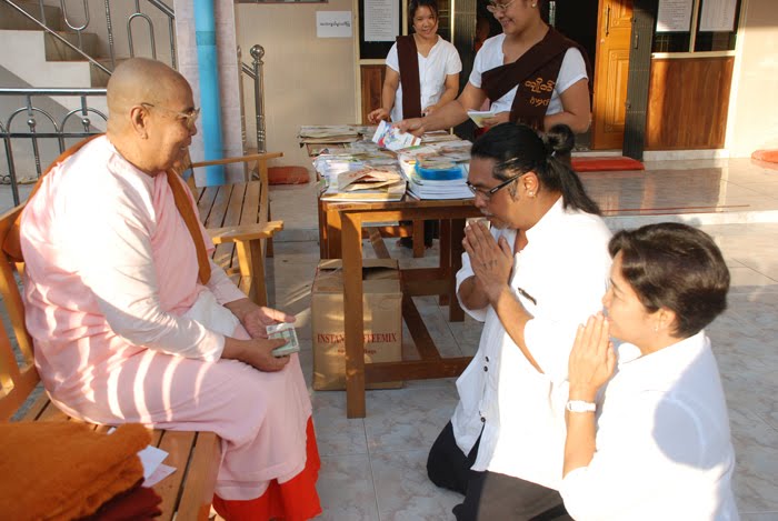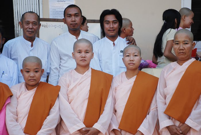 ၁၁.၄.၂၀၁၂ ေန႔ နံနက္ (၆း၃၀) အခ်ိန္တြင္ အမ်ိဳးသားအုပ္စုတို႔အား နာေရးကူညီမႈအသင္း (ရန္ကုန္) မွ ဖယ္ရီေမာ္ေတာ္ယာဥ္တစ္စီးျဖင့္ ျပည္ၿမိဳ႕သို႔ထြက္ခြာခဲ့ၿပီး ေန႔လည္ (၂း၃၀) အခ်ိန္တြင္ ဆံခ်ၿပီးေနာက္သကၤန္းစီးကာ သိမ္၀င္ၿပီးရဟန္းဘ၀သို႔ကူးေျပာင္းခဲ့ၾကသည္။ ယင္းေန႔ ေန႔လည္ (၂း၀၀) နာရီခန္႔တြင္ အမ်ိဳးသမီးအုပ္စုတို႔အား သု၀ဏၰဘူမိေခမာရာမသီလရွင္စာသင္တိုက္ရွိရာ ေျမာက္ဒဂံုၿမိဳ႕နယ္သို႔ နာေရး ကူညီမႈအသင္း (ရန္ကုန္) မွပို႔ေဆာင္ခဲ့ၿပီး ေန႔လည္ (၃း၀၀) နာရီအခ်ိန္တြင္ဆံခ်ၿပီး သီလရွင္အျဖစ္သို႔ကူးေျပာင္းခဲ့ၾကသည္။ နာေရးကူညီမႈ အသင္း (ရန္ကုန္) ဥကၠ႒ဦးေက်ာ္သူႏွင့္ အတြင္းေရးမွဴးေဒၚေရႊဇီးကြက္၊ ဒုဥကၠ႒ေဒၚသန္းျမင့္ေအာင္တို႔သည္ အလုပ္မ်ားမအားလပ္ပါ၍ ျပည္ၿမိဳ႕သို႔လိုက္လံပို႔ေဆာင္ႏိုင္ျခင္းမရိွေသာ္လည္း ရန္ကုန္ၿမိဳ႕ ေျမာက္ဒဂံုၿမိဳ႕နယ္ရိွ သု၀ဏၰဘူမိ ေခမာရာမသီလရွင္စာသင္တိုက္သည္ နာ ေရးကူညီမႈအသင္း (ရန္ကုန္) ႏွင့္ မေ၀းလွေသာေၾကာင့္ သြားေရာက္သာဓုေခၚဆိုႏိုင္ခဲ့သည္။ သု၀ဏၰဘူမိ ေခမာရာမသီလရွင္စာသင္တိုက္ ပဓာနနာယကဆရာႀကီး ေဒၚကုသလာစာရီထံသို႔လည္း န၀ကမၼအလွဴေငြ က်ပ္ (၁) သိန္းအား ဥကၠ႒ဦးေက်ာ္သူႏွင့္ ဇနီးေဒၚေရႊဇီးကြက္တို႔ လွဴဒါန္းခဲ့ကာ အသင္းသူ သီလရွင္မ်ားႏွင့္ အမွတ္တရဓာတ္ပံု႐ုိက္ကူးခဲ့သည္။