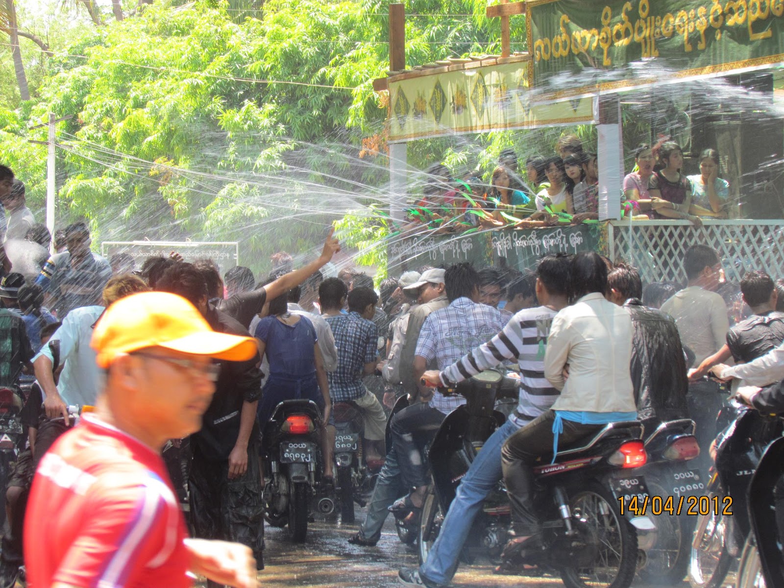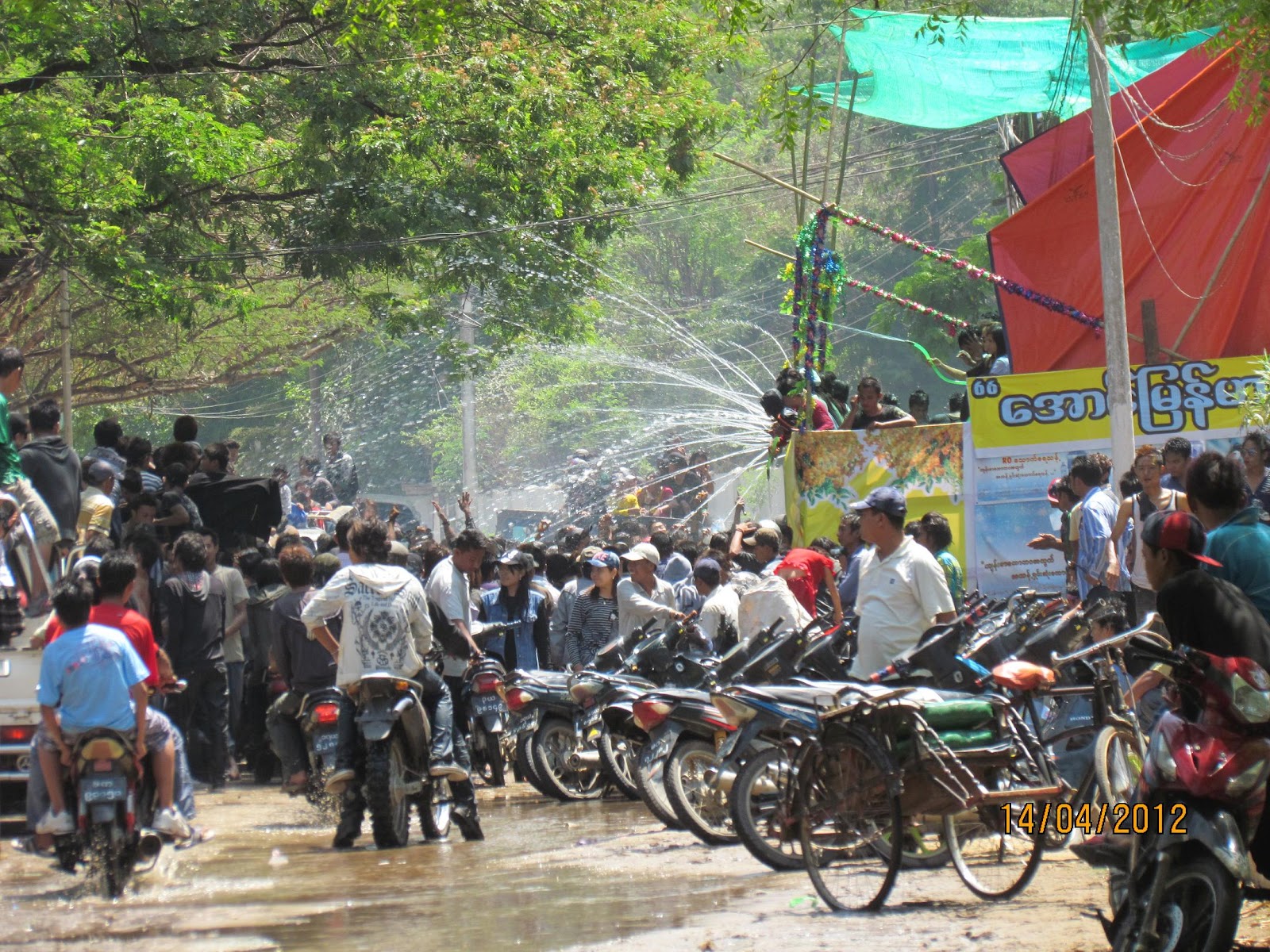 မေကြးျမိဳ႔ ကမ္းနားလမ္းမွာ အစုုိးရ၏ ဗဟိုုမ႑ပ္တြင္ အာဏာပိုုင္ႏွင့္ အသိုုင္းအ၀န္းမ်ားက သၾကၤန္ပြဲကိုု ဆင္ႏႊဲၾကျပီး ကမ္းနားလမ္းမွလြဲ၍ ျမိဳ႔ေဒသအႏွံ႔ အမ်ားျပည္သူတိုု႔ ေရကစားလ်က္ရွိေၾကာင္း၊ မ႑ပ္ၾကီး ၁၂ ခုုခန္႔ ရွိေၾကာင္း၊ ယခုုႏွစ္တြင္လည္း ျပည္သူတိုု႔ အေပ်ာ္က်ဳးၾကသျဖင့္ ယာဥ္တိုုက္မႈ၊ ဓါးထိုုးမႈ၊ ဆိ္ုုယ္ကယ္ေပၚက ျပဳတ္က်မႈေတြ ရွိေၾကာင္း မေကြးျမိဳ႔ခံက သူ႔အျမင္ကိုု ေျပာသည္။