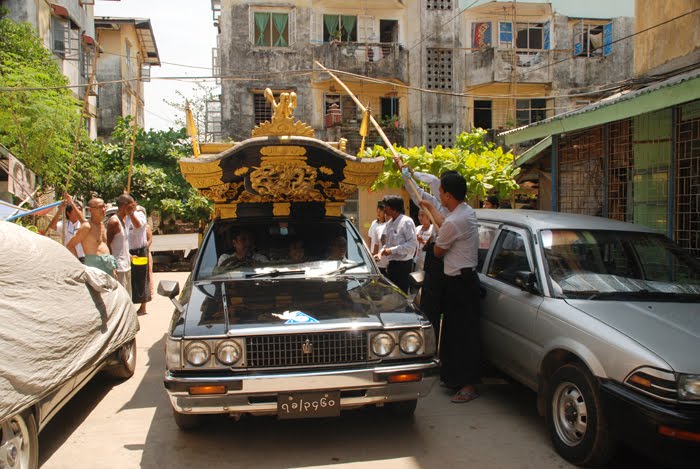 ယေန႔ နာေရးကူညီမႈအသင္း (ရန္ကုန္) ၏ နာေရးကူညီမႈေပါင္း (၃၆) ေၾကာင္းရွိသည့္အနက္ ေျမာက္ဒဂံု (၄၁) ရပ္ကြက္ရွိ ေတာ္၀င္အိမ္ရာ တိုက္ခန္းတြင္ ဘ၀တစ္ပါးသို႔ေျပာင္းလဲသြားေသာ ေဒၚညြန္႔တင္ အသက္ (၉၀) ၏ ေနာက္ဆံုးခရီးအား ဥကၠ႒ဦးေက်ာ္သူႏွင့္အတူ ဇနီးေဒၚ ေရႊဇီးကြက္တို႔ အတူတကြ ကုသိုလ္ယူ လိုက္လံပို႔ေဆာင္သၿဂႋဳလ္ေပးခဲ့သည္။ ဦးေက်ာ္သူတို႔ႏွင့္အတူ နာေရးကူညီမႈ အသင္းသား/သူ မ်ားသည္ အသင္းဖယ္ရီကားႏွင့္လည္းေကာင္း၊ ကြယ္လြန္သြားေသာ အေမႀကီးေဒၚညြန္႔တင္သည္ အသက္ (၉၀) ျဖစ္ေသာေၾကာင့္ အထူး နိဗၺာန္ယာဥ္ျဖင့္ ဦးေက်ာ္သူကိုယ္တိုင္ေမာင္းႏွင္ကာ ေရေ၀းသုႆာန္သို႔ ပို႔ေဆာင္သၿဂႋဳလ္ေပးခဲ့ပါသည္။ ေတာ္၀င္အိမ္ရာသို႔၀င္ရာလမ္းက်ဥ္းေလးတြင္ ဓါတ္ႀကိဳးမလြတ္၍ ၀ါးလံုးျဖင့္ေထာက္ကာ၀င္လာခဲ့ရသည္မွလြဲ၍ လမ္းတေလွ်ာက္ ေရကစားၾကသူမ်ား၊ အရက္ေသစာ ေသာက္ထားသူမ်ားကလည္း နာေရးကူညီမႈအသင္း (ရန္ကုန္) ၏ေမာ္ေတာ္ယာဥ္မ်ားကို အေႏွာက္အယွက္ေပးျခင္းကင္းစြာျဖင့္ ေမာင္းႏွင္ ရာတြင္ အဆင္ေျပေခ်ာမြတ္ေစရန္ ၀ိုင္း၀န္းအကူအညီေပးခဲ့ၾကသည္။ ယင္းလမ္းေၾကာင္းတြင္ သႀကၤန္အႀကိဳေန႔နည္းတူ ေျမာက္ဥကၠလာလမ္း မႀကီးသည္ ေရကစားသူနည္းပါးလွေသာေၾကာင့္ အဆင္ေျပစြာျဖင့္ေမာင္းႏွင္ႏိုင္ခဲ့ပါသည္။