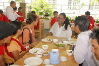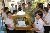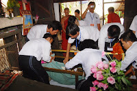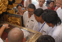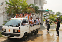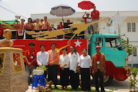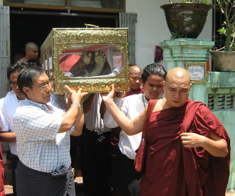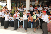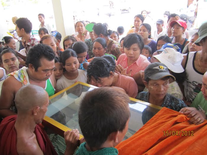 ယခု ၂၀၁၂ ခုႏွစ္ မဟာသႀကၤန္ပြဲေတာ္ရက္သည္ အျခားေသာ မဟာသႀကၤန္ႏွစ္မ်ားႏွင့္မတူ၊ နာေရးကူညီမႈအသင္း (ရန္ကုန္) ႏွင့္ ျမန္မာ ျပည္သူ/သားမ်ားအတြက္ မဂၤလာအရွိဆံုး မဟာသႀကၤန္ ႏွစ္ထူးႏွစ္ျမတ္ျဖစ္ေစခဲ့ေတာ့သည္။ အမ်ားျပည္သူလူထု တခဲနက္ ေထာက္ခံအား ေပးမႈကိုခံခဲ့ရေသာ အမ်ဳိးသားဒီမိုကေရစီအဖြဲ႔ခ်ဳပ္၏ ေအာင္ျမင္မႈရ႐ိ္ွေသာ ႏွစ္ျဖစ္သလို အက်ဥ္းက်ႏိုင္ငံေရးအက်ဥ္းသားမ်ားျဖစ္ေသာ (၈၈)ေက်ာင္းသားမ်ား ျပန္လည္လြတ္ေျမာက္လာေသာ ႏွစ္လည္းျဖစ္သည္။ ထို႔ျပင္ ႏွစ္ေပါင္း (၃၀) ခန္႔ မျမင္ရသည္မွာၾကာၿပီျဖစ္ေသာ သံခ်ပ္အဖြဲ႔မ်ား ျပန္လည္ေပၚေပါက္လာေသာ ႏွစ္သစ္လည္းျဖစ္ေပသည္။ နာေရးကူညီမႈအသင္း (ရန္ကန္) ၏ ေန႔စဥ္မြန္းၾကပ္မႈမ်ား၊ ေလွာင္ ပိတ္မႈမ်ားႏွင့္ ကြၽန္ေတာ္တို႔အား ကူးစက္လႊမ္းျခံဳျခင္းခံေနရေသာ ေရာဂါေ၀ဒနာရွင္တို႔၏ အပူမီးမ်ား၊ နာေရး႐ွင္တို႔၏ နာေရးပရိေဒ၀ အပူမီး မ်ားအား ယခုကဲ့သို႔ ခဏတာအတြင္း ေျပေပ်ာက္ေအးခ်မ္းမႈကို လာေရာက္ေဆးေၾကာေပးၾကေသာ NLD၊ BG ေသြးလွဴအဖြဲ႔၏ ေဖ်ာ္ ေျဖသီ ဆိုေရးအဖြဲ႔ႏွင့္ (၈၈) ေက်ာင္းသားမ်ား မဟာသႀကၤန္သံခ်ပ္အဖြဲ႔တို႔အား ၀မ္းေျမာက္၀မ္းသာပီတိျဖစ္ကာ ေက်းဇူးအထူးတင္ရွိပါ ေတာ့သည္။ ထို႔ေၾကာင့္ ကြၽန္ေတာ္တို႔ လူမႈေရးသမားမ်ားသည္ အမ်ားျပည္သူတို႔၏ ေသာကအပူမီးမ်ားကို လိုက္လံၿငိမ္းသတ္ေပးေနရသကဲ့သို႔ မိမိတို႔ တြင္စြဲကပ္ေနေသာ ေသာကအပူမီးမ်ားအားလည္း ယခုကဲ့သို႔ျပန္လည္၍ ၿငိမ္းေအးေစေသာ အခ်ိန္အခိုက္အတန္႔အတြင္းတြင္ ၿငိမ္းေအး ေစျခင္းသည္ NLD၊ BG ေသြးလွဴအဖြဲ႔၏ သီဆိုေဖ်ာ္ေျဖမႈ အလွျပေမာ္ေတာ္ယာဥ္အဖြဲ႔သားမ်ားအား ေက်းဇူးတင္စကား ျပန္လည္ေျပာၾကား ခဲ့ေသာ ဥကၠ႒ ဦးေက်ာ္သူ၏ “ ေဒါင္းဆိုတာ … ခြပ္ ခ်ိန္တန္ ခြပ္၊ ကခ်ိန္တန္က ရတယ္ ” ဟူေသာ စကားပမာပင္ ျဖစ္ေတာ့သည္။